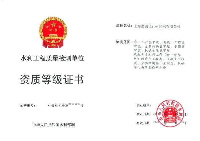 ?????????????????????? ???水利工程質(zhì)量檢測(cè)單位:巖土工程甲級(jí)、混凝土工程甲級(jí)、金屬結(jié)構(gòu)甲級(jí)、量測(cè)甲級(jí)、機(jī)械電氣甲級(jí)